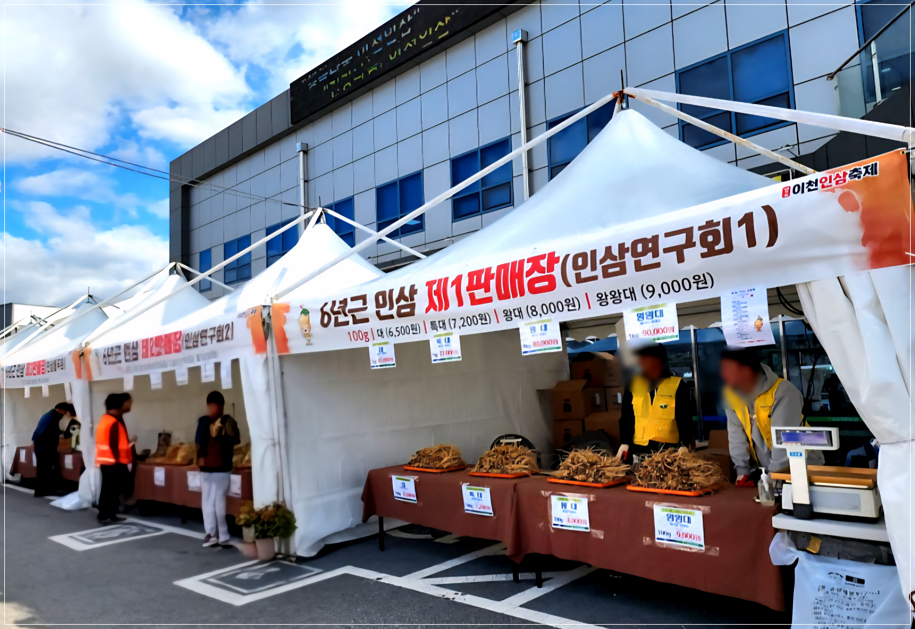 축제장에 들어서면 가장 먼저 눈길을 끄는 곳이 바로 인삼 판매부스입니다.